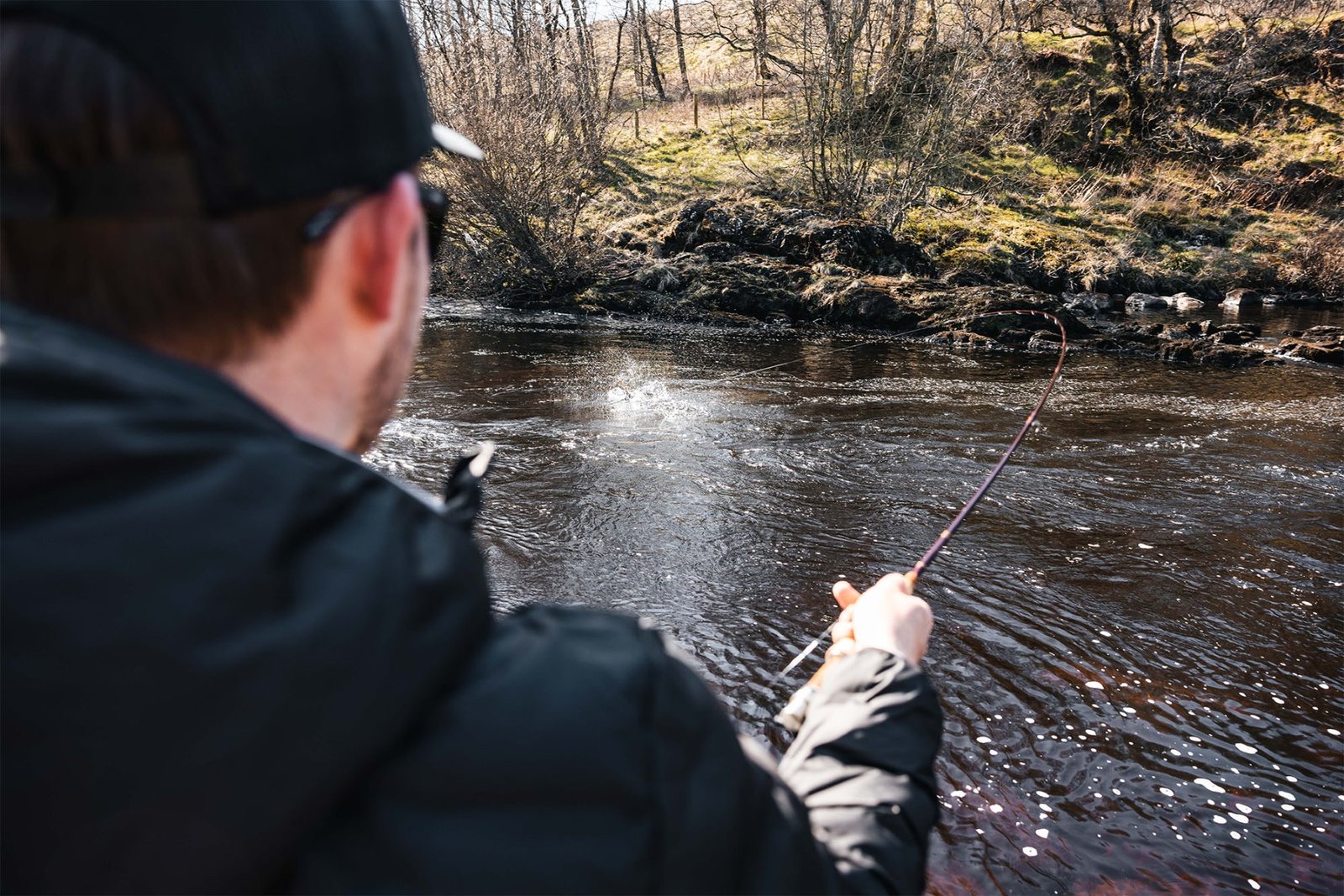 As the water temperature is cold (less than 10°c), the fish will often sit in slower water. This is because they expend less energy here, moving into faster water to feed when there is a hatch. Therefore, when it’s colder, I generally fish in the slower, more placid runs. When the sun hits the water or during a warm spell weather, your attention should shift to more usual feeding lies. Remember: during the early season it isn’t uncommon for a spooked fish to take a fly again in a short space of time, though they may not always be in the same position.