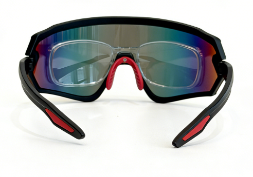 Frame:mat black frame+red rubber embedded temple+red rubber nosepad
