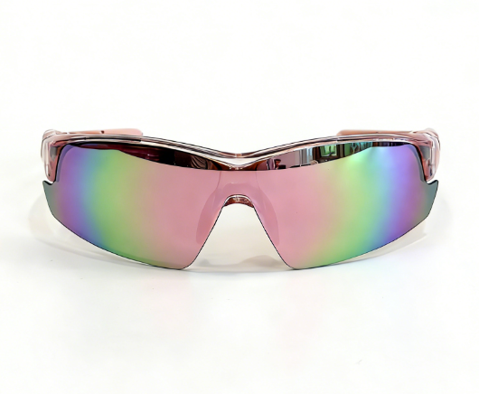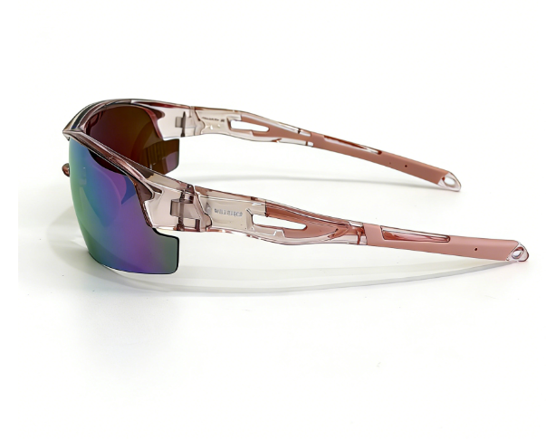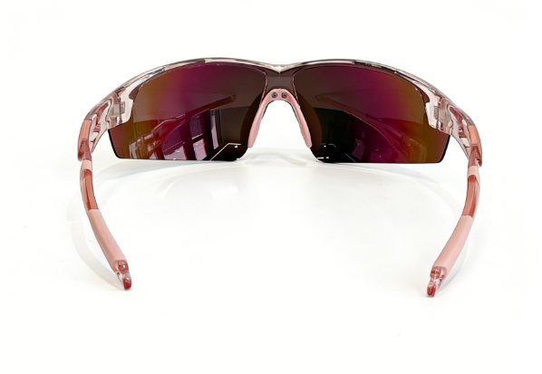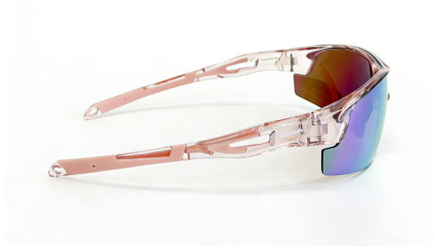 Frame: shiny clear pink frame+pink rubber covered temple+pink rubber nosepad
