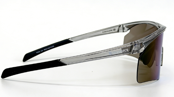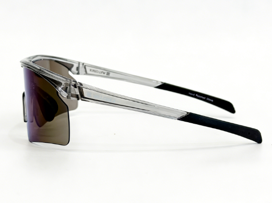 Frame: mat clear grey frame+black rubber covered temple+black rubber nosepad