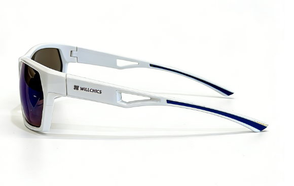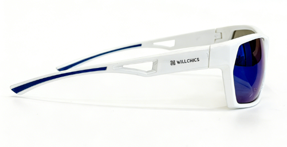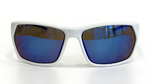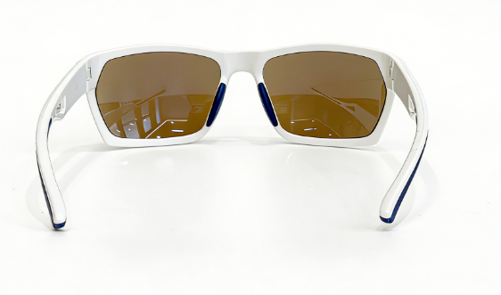 Frame: shiny white frame+blue rubber embedded temple+blue rubber nosepad