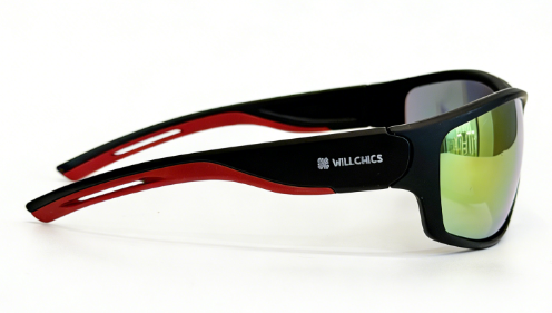 Frame: mat black frame+red rubber embedded temple+red rubber nosepad